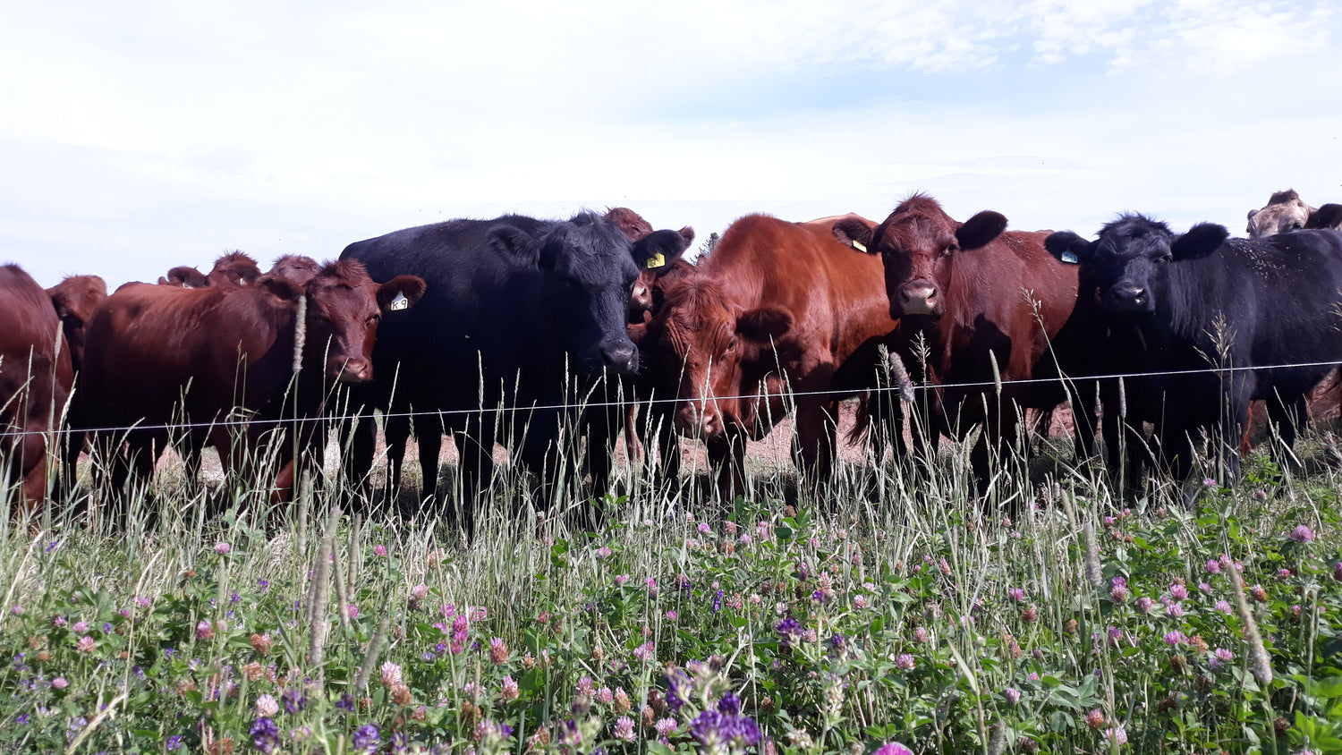 During the growing season (May–Nov.) the cattle are rotationally grazed on pasture. This means that the cattle are given a block of pasture (a few acres) that they graze on, once that is grazed off (every few days) they are moved ahead onto the next piece of pasture. This constant moving onto new pasture helps eliminate parasites (they do not eat again where they have manured) and helps to make more efficient use of the pasture ground.